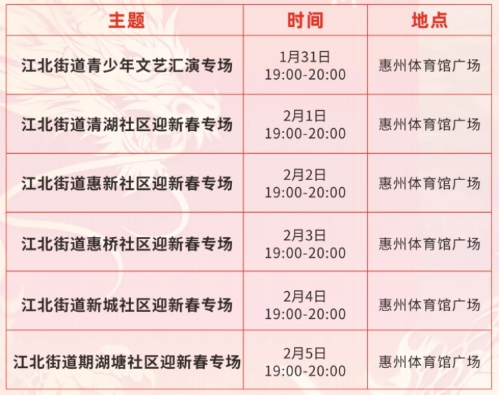 活動(dòng)地點(diǎn):江北街道惠州體育館廣場(chǎng)