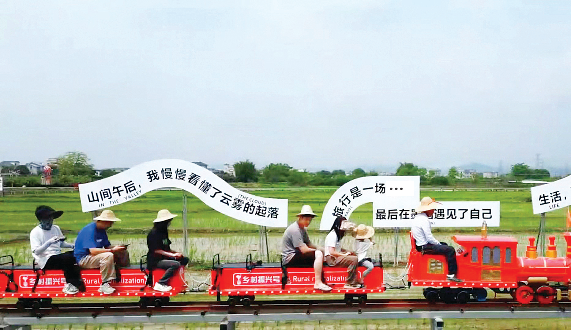 坐上小火車穿越稻田。