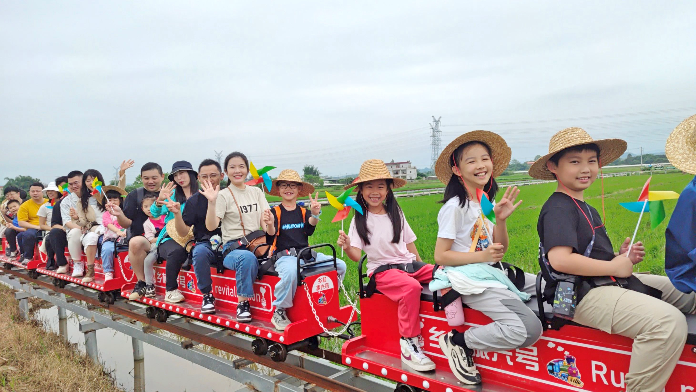 橫瀝鎮(zhèn)墨園村鄉(xiāng)村游火爆。這是游客在墨園村開(kāi)心乘坐稻田小火車。惠州東江圖片社供圖