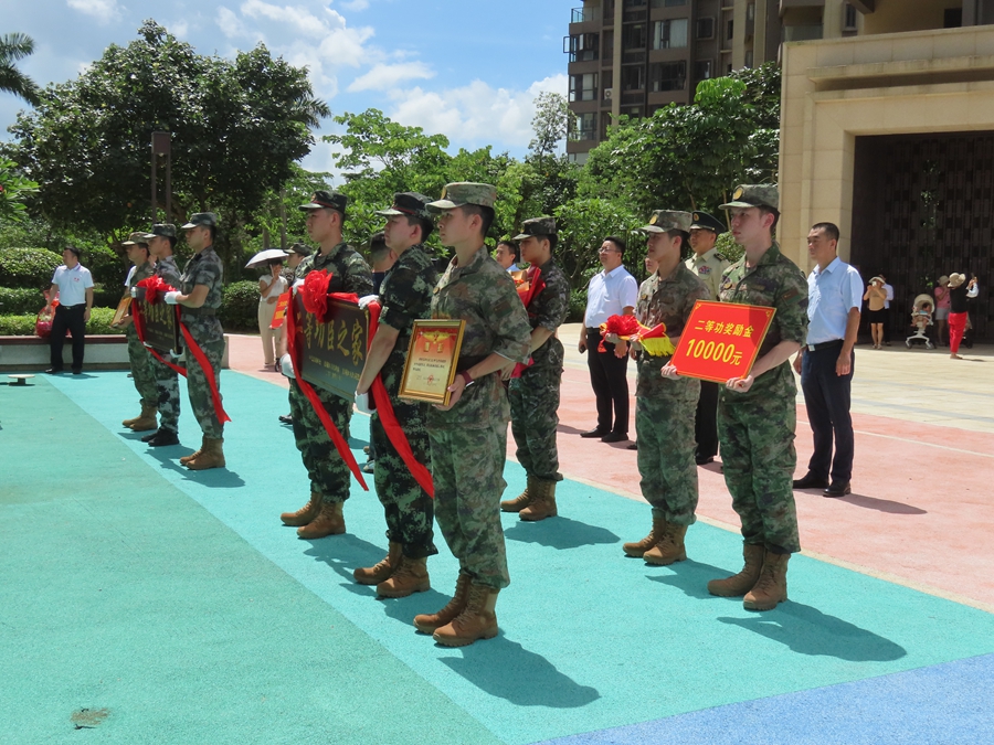 惠州日報訊 (記者葉文青 通訊員詹璐)日前,惠城區(qū)河南岸街道譽山湖小區(qū)熱鬧非凡,鑼鼓聲響徹云霄,一場特殊而又溫馨的表彰會正在舉行。兩名在部隊榮立二等功的軍人,同一天迎來了他們的立功受獎喜報和牌匾。