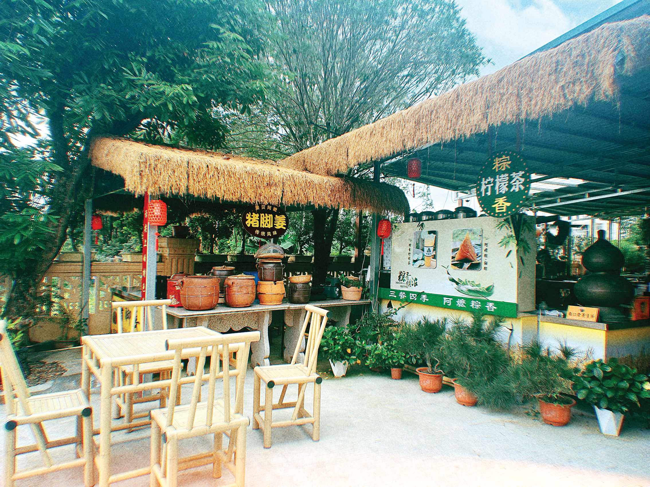 “黃家和苑”院子一樓打造成一個休閑團建場地,二樓設(shè)置了一個“阿嬤粽體驗館”,每天早上有當(dāng)?shù)匕咴诎兆樱慰涂梢砸煌w驗親手包粽子。嚴(yán)敏還順勢當(dāng)起了“家鄉(xiāng)美食推介官”。火爆社交網(wǎng)絡(luò)的阿嬤粽,讓澳背村40多名村民實現(xiàn)了家門口就業(yè)。今年端午節(jié)阿嬤粽的銷售額超過80萬元!包S家和苑”也變身體驗感拉滿的農(nóng)家小院,還創(chuàng)新研發(fā)了粽香檸檬茶、枧水粽做成的阿嬤糖水,晚上在庭院可一邊品嘗碳爐奶茶、碳爐羊肉和燒烤,一邊觀賞漫天星空,美食美景相融好不愜意。
