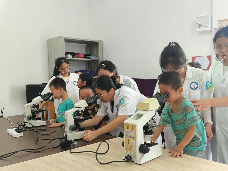 “這就是蛔蟲卵啊,以后我飯前便后一定要好好洗手!”在健康文化課程中,孩子們首次通過顯微鏡觀察了蛔蟲卵,深刻理解了個人衛(wèi)生的重要性。來自惠州衛(wèi)生職業(yè)技術(shù)學(xué)院的志愿者巧妙結(jié)合理論與實踐,讓孩子們在操作中學(xué)習(xí),寓教于樂。據(jù)培訓(xùn)班負責(zé)人介紹,相較往年,今年課程更豐富,引入不同類型的青年大學(xué)生突擊隊力量,填補了孩子們知識的空白區(qū)域。
