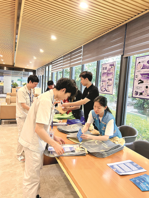 就業(yè)驛站工作人員進(jìn)企業(yè)宣傳就業(yè)政策。