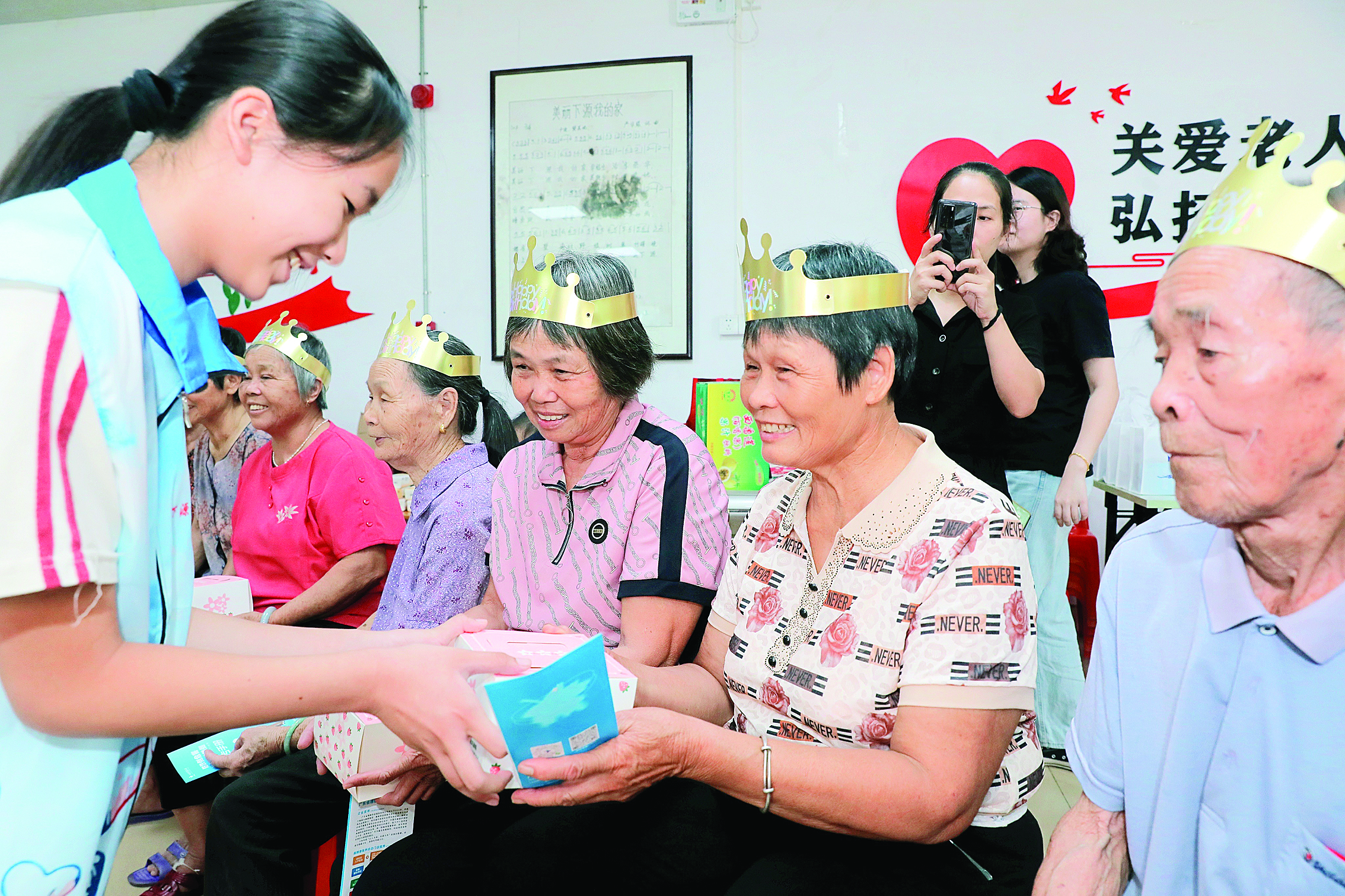“這樣的活動(dòng)我第一次參加,很有意思,以后放假有時(shí)間會(huì)多參加這類(lèi)志愿活動(dòng)!睂W(xué)生嚴(yán)闖說(shuō),他們這批小志愿者,為老人獻(xiàn)唱生日歌,用歌聲傳達(dá)他們最真誠(chéng)熱情的祝福,隨后還為每位壽星送上精心準(zhǔn)備的禮物。