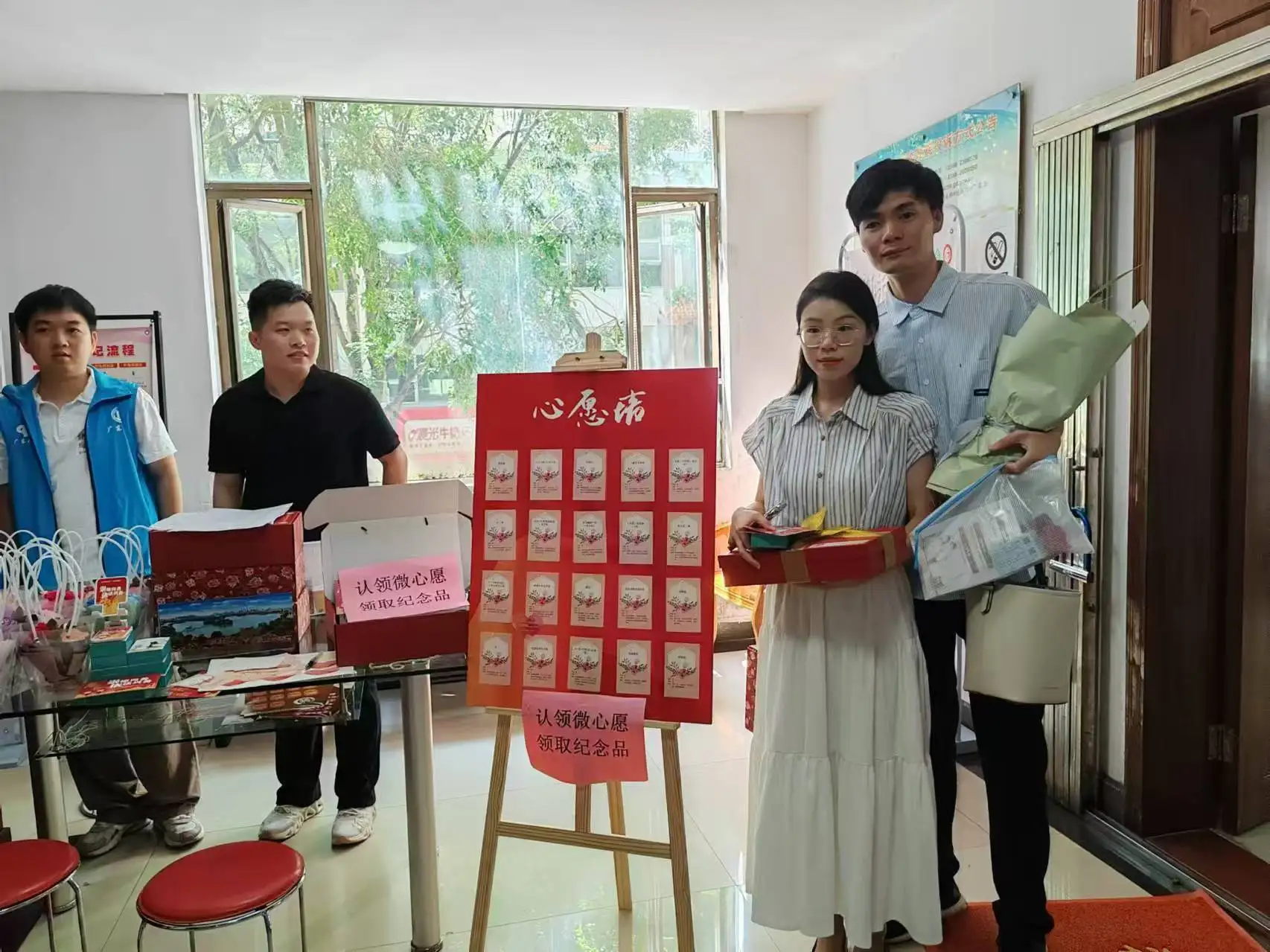 9時(shí)30分,記者來到了惠城區(qū)民政局婚姻登記處,現(xiàn)場已有不少正在辦理登記手續(xù)的新人。市民政局工作人員、社工在現(xiàn)場擺起了小攤,支起“微心愿”愛心墻,把慈善文化融入婚姻登記服務(wù)過程。民政部門準(zhǔn)備寓意“一輩子”的喜慶杯子、花藝小品等小禮物,每對參與的新人在捐贈后會收到一份捐贈禮品。