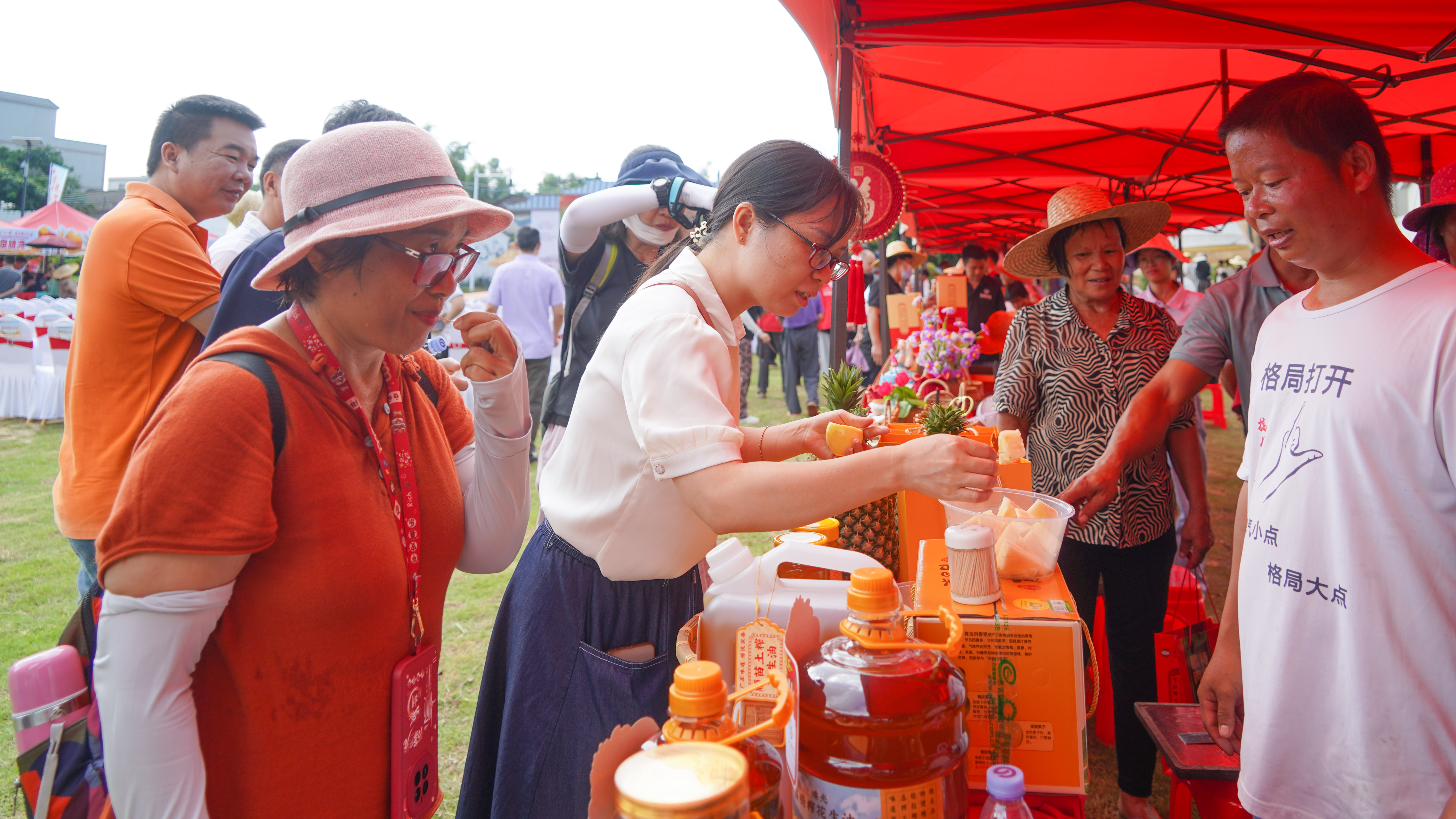 汝湖鎮(zhèn)的甜玉米、橫瀝鎮(zhèn)的絲苗米、良井的鳳梨、龍門縣的金線蓮、冊亨縣的山茶油……豐收節(jié)現場人頭攢動、熱鬧非凡,琳瑯滿目的農產品攤位引人駐足,一大批農特產品展銷充分展示了惠州農業(yè)的豐富多樣性和高質量發(fā)展成果,F場還舉辦“五品一展”活動,包括品賞和美鄉(xiāng)村攝影成果展、品鑒農特產品和非遺產品、品趣農閑活動、品閱農耕文化展示老農具、云品惠城粵字號產品以及展示橫瀝“三產融合”成果和參觀橫瀝鎮(zhèn)鄉(xiāng)村振興成效。同時,主辦方還邀請了黔西南州有關企事業(yè)單位共享這場豐收盛會。