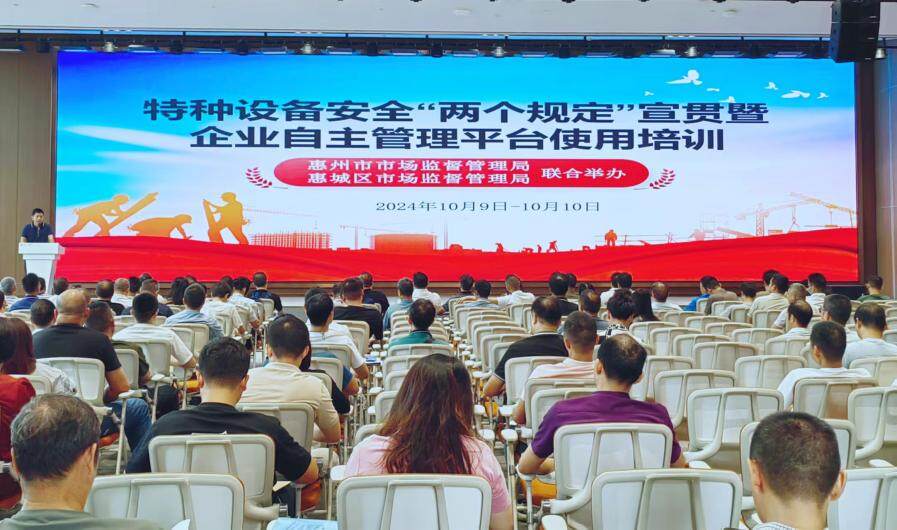 日前,惠城區(qū)市場監(jiān)督管理局聯(lián)合市市場監(jiān)督管理局在天安數(shù)碼城舉辦特種設備安全“兩個規(guī)定”宣貫暨企業(yè)自主管理平臺使用培訓活動,共計3場次,近400家特種設備使用單位積極參加培訓。