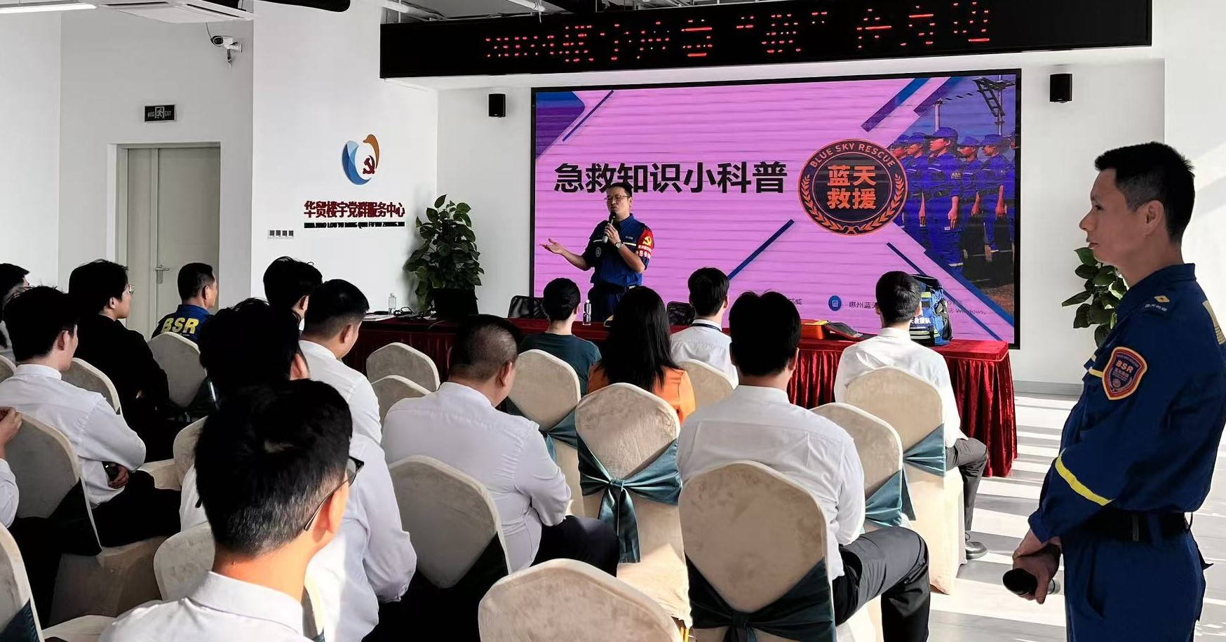 在收集樓宇企業(yè)員工的需求后,日前,服務(wù)站聯(lián)合惠州市藍(lán)天救援隊(duì)在華貿(mào)大廈組織開展了主題為“2024樓宇應(yīng)急‘救’在身邊”的應(yīng)急知識(shí)專題科普培訓(xùn),吸引了60余名企業(yè)員工參加。