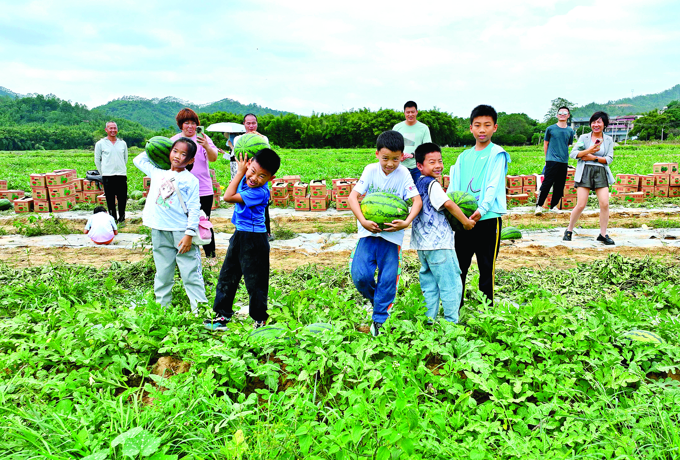 孩子們開心地抱起自己采摘的西瓜。 惠州日報記者彭紅霞 特約通訊員廖詠琳 通訊員歐汶婷 攝