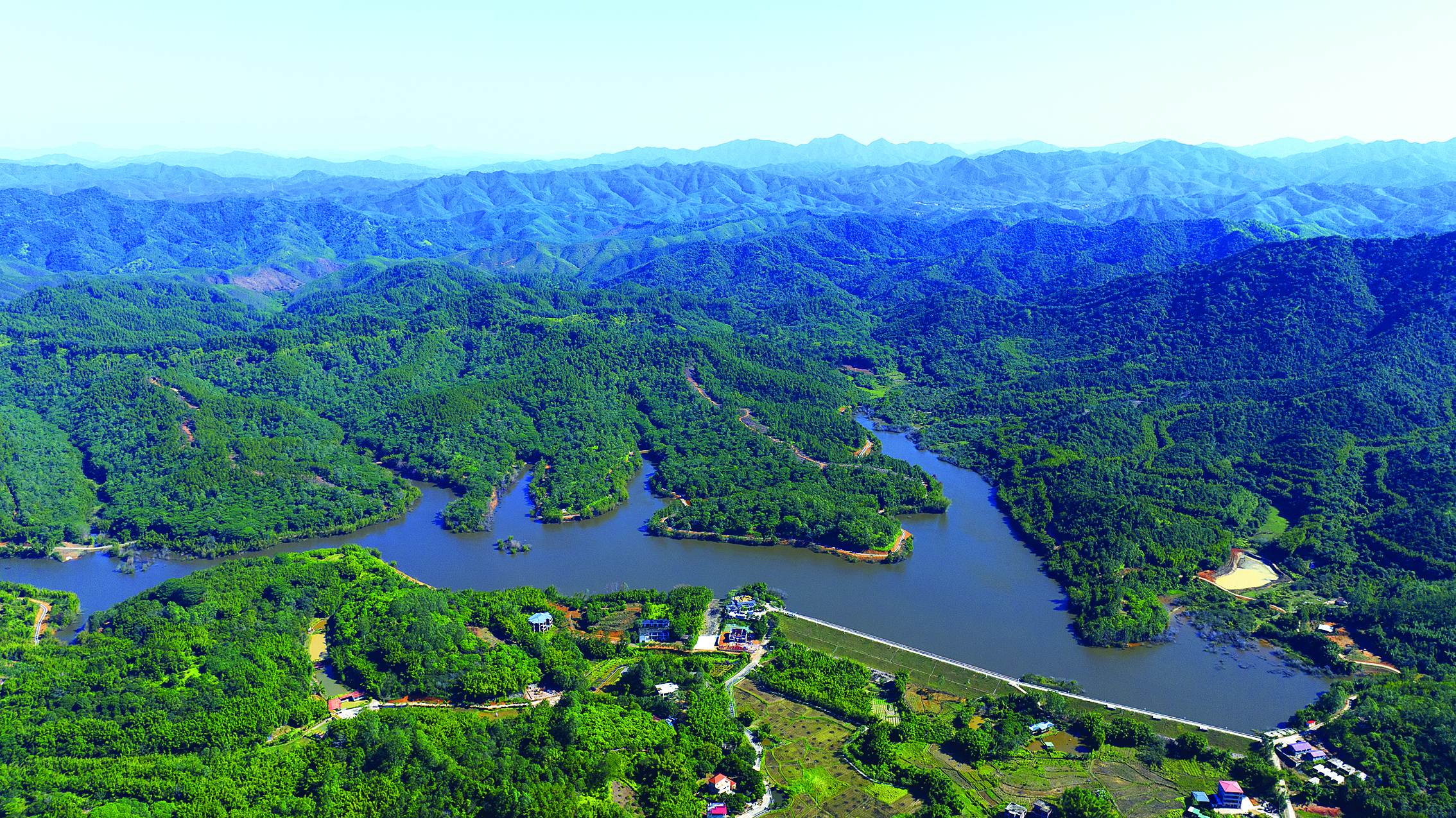黃沙洞村村道干凈整潔,特色民宿林立,從村口沿著省立3號綠道行至金沙湖水庫大壩,沿途田園風(fēng)光美不勝收,金沙湖水庫周圍群峰起伏,遠(yuǎn)處林木蒼翠,竹影婆娑,置身此地,令人神清氣爽,忍不住盡情“吸氧”。
