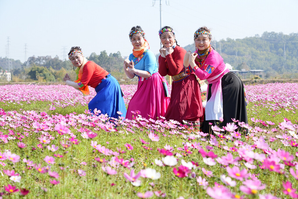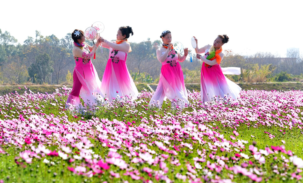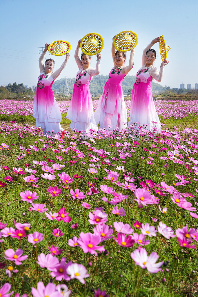 1月18日,在惠州市惠城區(qū)小金河大道路邊,有30畝格桑花正在盛放,在陽光的照耀下,朵朵格;ㄓL(fēng)搖曳,就像一片粉紅色的海洋,而蝴蝶和蜜蜂則在這片花海中穿梭忙碌著,還有愛好舞蹈的人士在這里翩翩起舞,盡情地享受著這難得的盛宴。