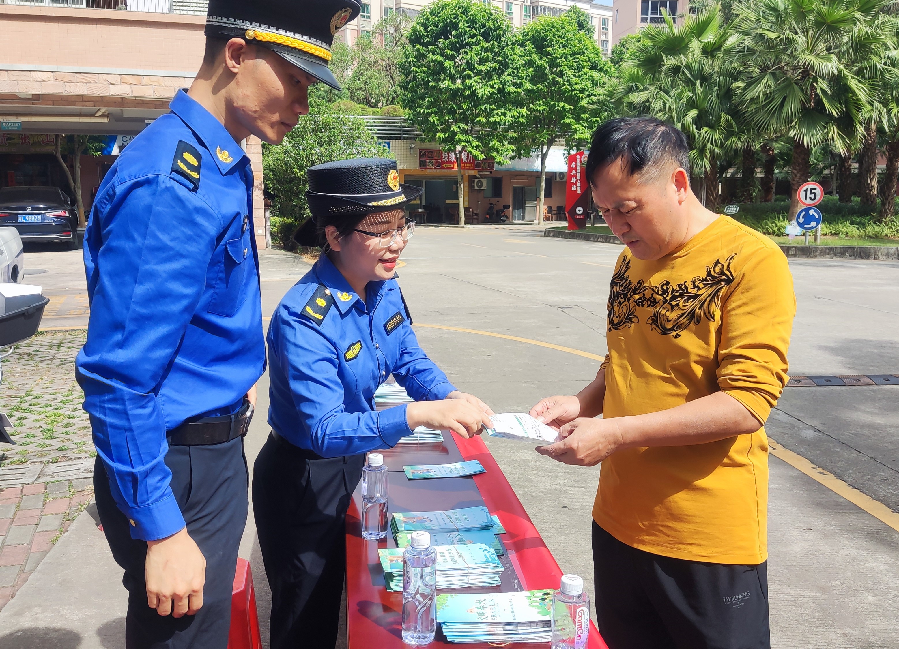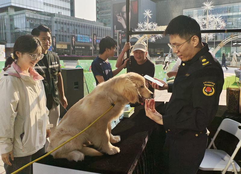 執(zhí)法人員進(jìn)社區(qū)開展文明養(yǎng)犬宣傳。