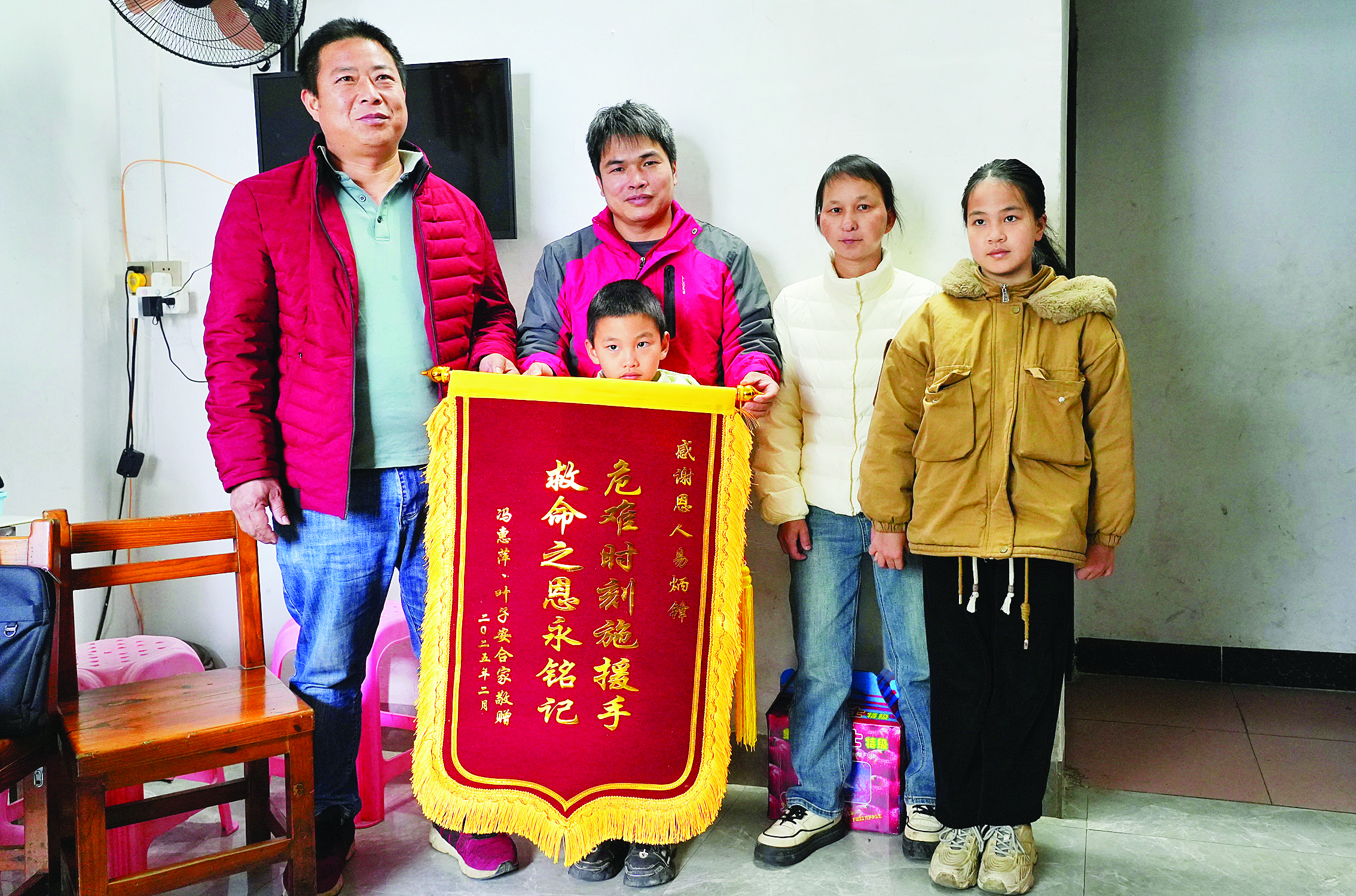 馮惠萍一家尋找救命恩人8個(gè)月,登門給易炳鋒拜年送錦旗