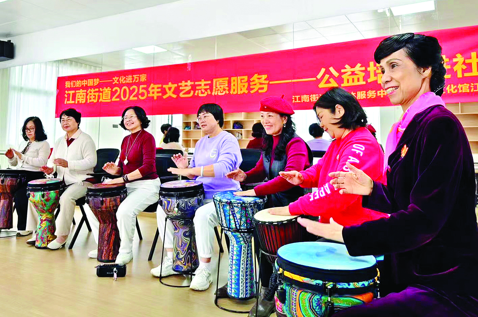 日前,祝屋巷未來(lái)社區(qū)舉辦“我們的中國(guó)夢(mèng) 文化進(jìn)萬(wàn)家”公益培訓(xùn)課堂,其中非洲鼓、中國(guó)舞課程已率先開(kāi)班,吸引了近50名退休職工和居民報(bào)名參加。