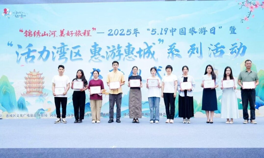 活動上,惠城區(qū)文旅體相關負責人授予“2025年惠城文旅傳播使者”、授予“2025年惠城文旅傳播之星”各10名,以及為惠州市燈船文化旅游發(fā)展有限公司頒發(fā)愛心贊助企業(yè)牌匾。據(jù)了解,這些文旅傳播使者、傳播之星是通過此前“文旅新篇·惠聲惠色”2025年惠城區(qū)導游(文旅達人)培訓活動,通過“以賽促訓”“以賽代訓”的方式挖掘一批熱愛惠城文化、善于文旅推廣、擅長網(wǎng)絡傳播的文旅達人。