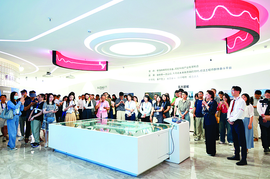 采訪團在利元亨展廳聽取企業(yè)運營情況介紹。