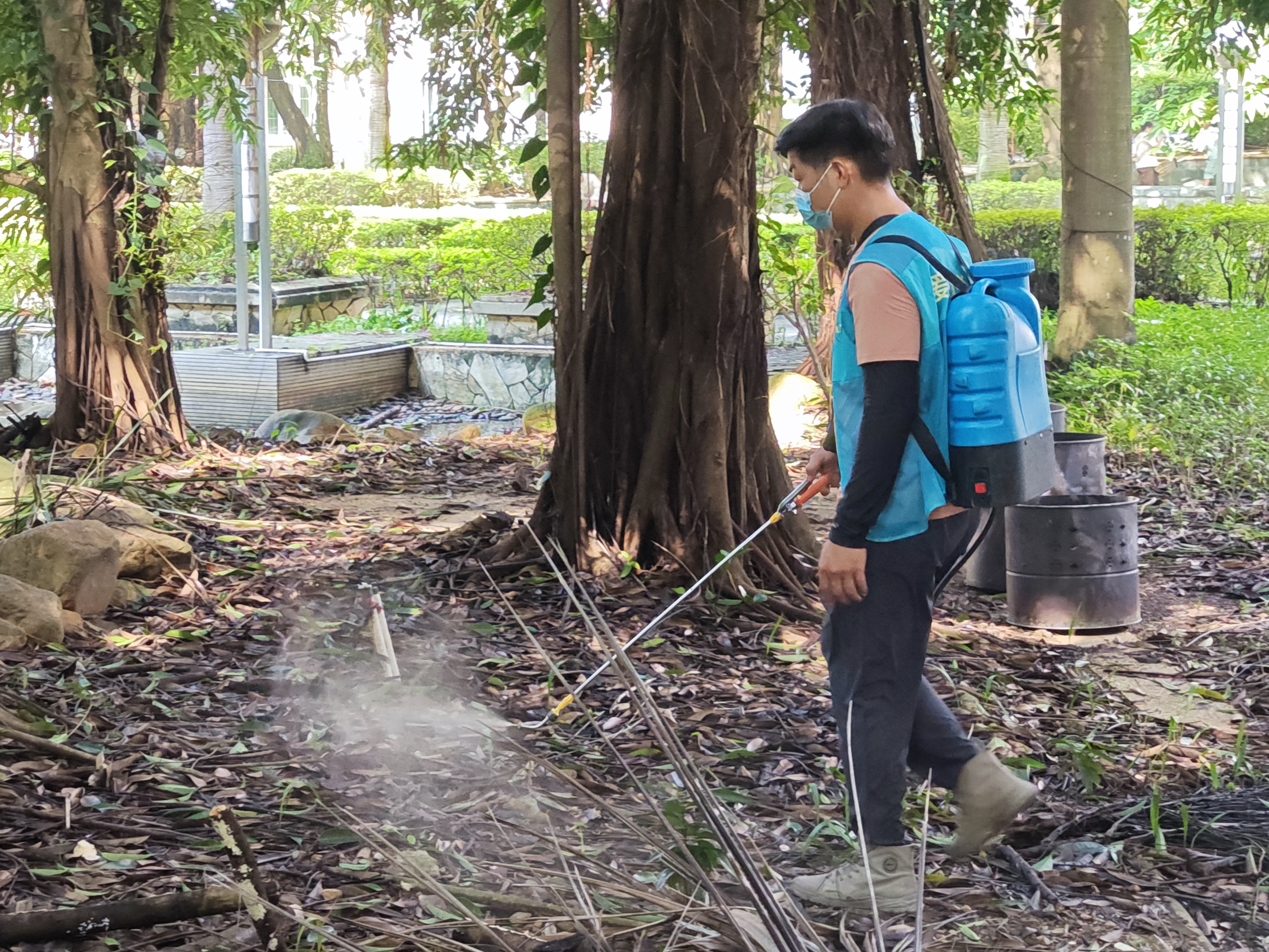 工作人員消殺蚊蟲。 惠州日報記者葉文青 特約通訊員周文媚 攝