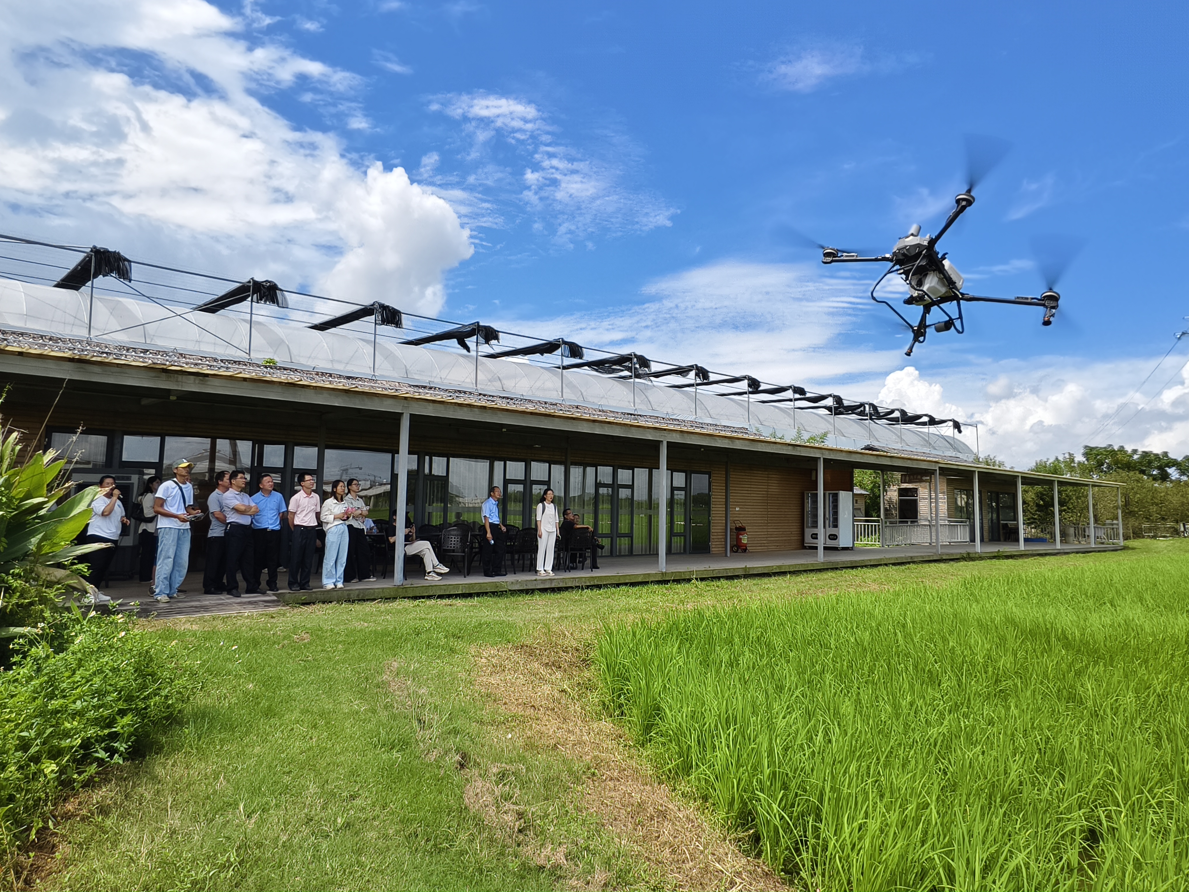 現(xiàn)場(chǎng)展示農(nóng)業(yè)無(wú)人機(jī)作業(yè)。