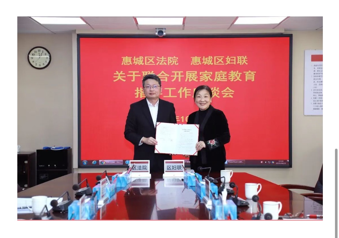 惠州日報訊 (記者謝菁菁 通訊員黃麗心)日前,惠城區(qū)婦聯(lián)與區(qū)人民法院共同舉辦家庭教育指導工作座談會,共同啟用“家庭教育指導中心+家事糾紛調解中心”,并簽署聯(lián)合開展家庭教育指導工作的實施意見。
