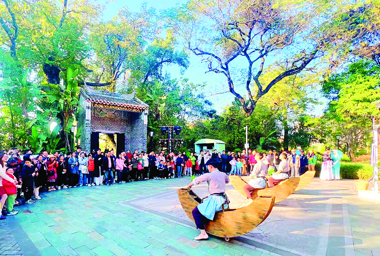 東坡祠景區(qū)以東坡文化為核心,推出《不辭長作嶺南人》沉浸式演出,還有古箏演奏、漢服體驗、詩詞朗誦等活動。游客們身著漢服漫步古祠,在紅墻黛瓦間感受東坡文化的深厚底蘊;趣味投壺、詩詞問答等互動游戲,更是讓老少游客樂在其中,在歡聲笑語中領略傳統(tǒng)文化的魅力。