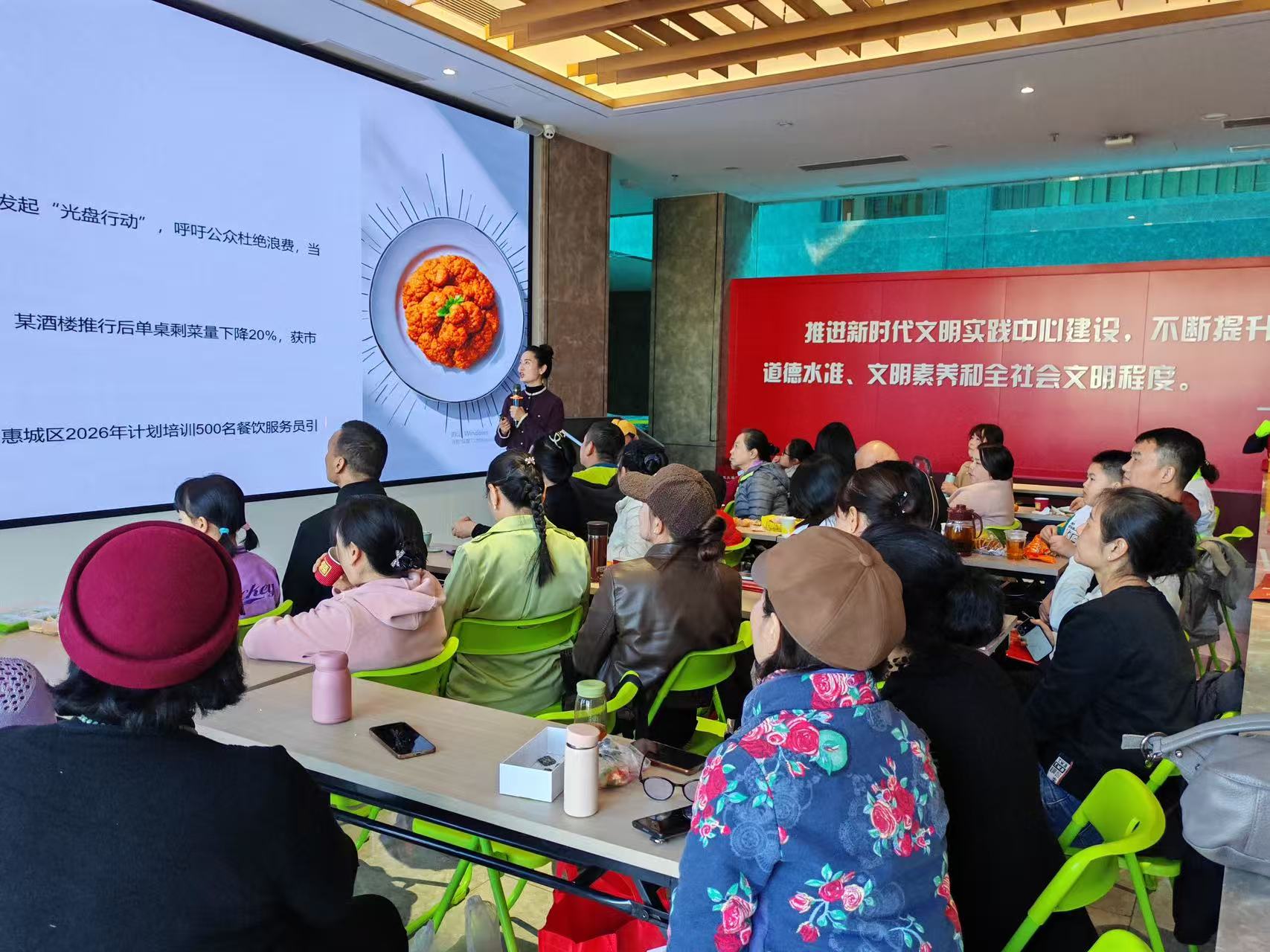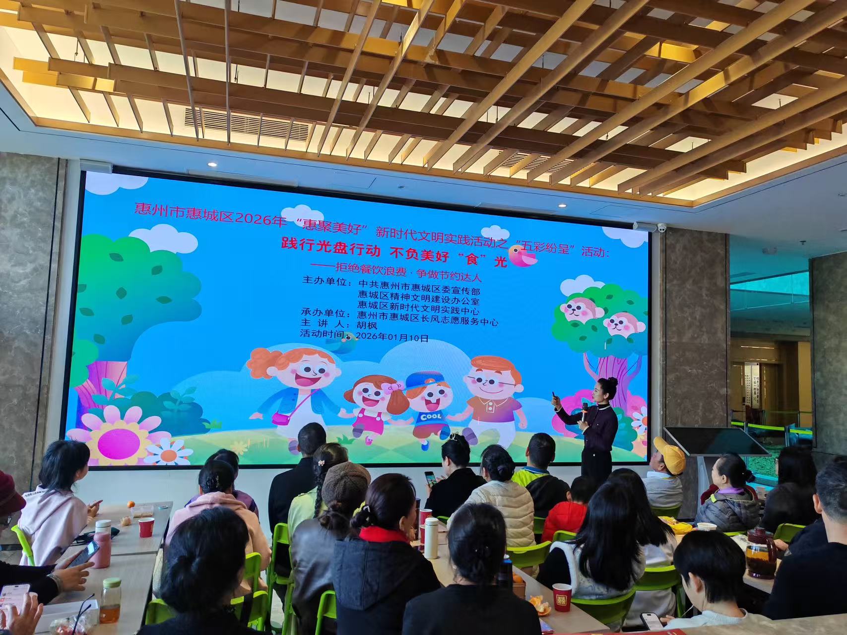 為弘揚(yáng)勤儉節(jié)約的傳統(tǒng)美德,杜絕餐飲浪費(fèi),2026年1月10日,惠州市惠城區(qū)2026年“惠聚美好”新時(shí)代文明實(shí)踐活動(dòng)之“五彩紛呈”系列活動(dòng)——“踐行光盤(pán)行動(dòng) 不負(fù)美好食光”主題活動(dòng)順利開(kāi)展。本次活動(dòng)由中共惠州市惠城區(qū)委宣傳部、惠城區(qū)精神文明建設(shè)辦公室,惠城區(qū)新時(shí)代文明實(shí)踐中心主辦,惠州市惠城區(qū)長(zhǎng)風(fēng)志愿服務(wù)中心承辦,廣東好人,高級(jí)禮儀培訓(xùn)師胡楓擔(dān)任主講人,以“拒絕餐飲浪費(fèi)·爭(zhēng)做節(jié)約達(dá)人”為核心,傳遞綠色節(jié)約理念。
