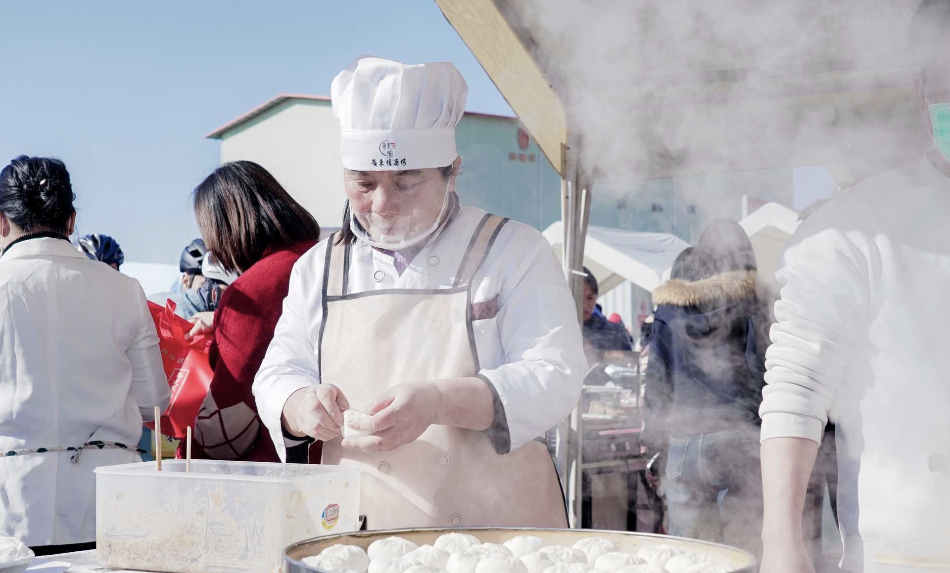 市民游客觀賞品鑒美食。