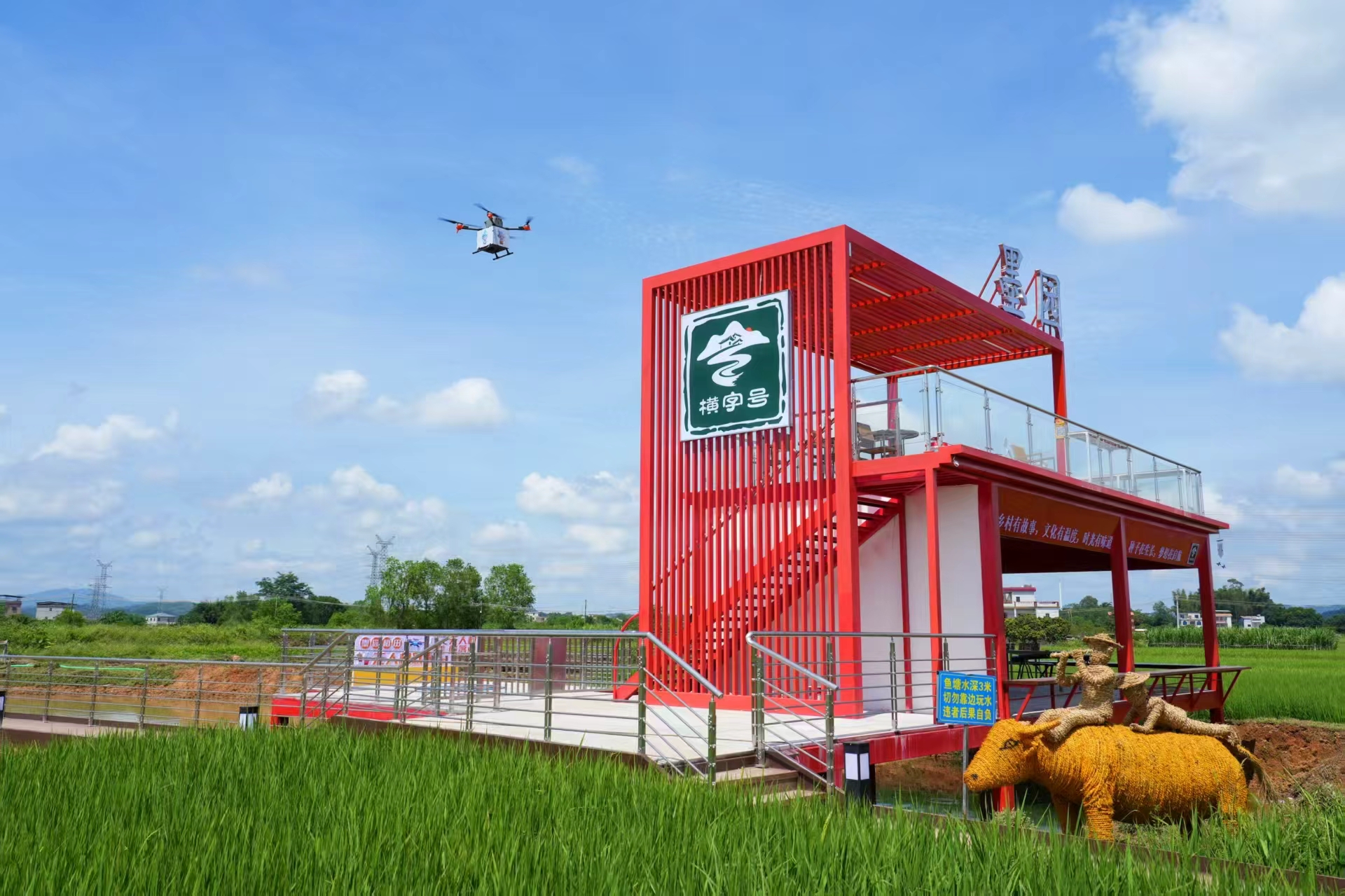 400年前,先祖跑馬滴墨圈定村址,故名“墨園”。如今,這個(gè)擁有10多棟300多間古建筑的傳統(tǒng)村落,正以意想不到的方式走進(jìn)年輕人的視野。百畝連片稻田里,稻草人錯(cuò)落分布,兩層鋼構(gòu)觀景臺(tái)上,游客掃碼下單,不到一分鐘,無(wú)人機(jī)便將稻香咖啡“從天而降”送到手中。