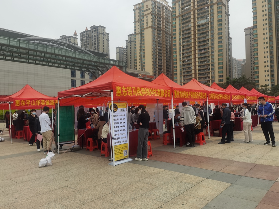 “可以來這里了解我們公司的崗位需求……”2月10日上午,為全力推進(jìn)“六穩(wěn)”“六!惫ぷ,保障就業(yè)穩(wěn)定,搭建求職者與用人單位雙選平臺,由惠東縣人力資源和社會保障局、惠東縣殘疾人聯(lián)合會主辦,惠州市職業(yè)介紹服務(wù)中心、惠東縣職業(yè)介紹服務(wù)中心承辦的惠東縣2023年“春風(fēng)行動”暨就業(yè)援助月現(xiàn)場招聘會在縣新文化廣場舉行。這場惠東縣今年首場線下招聘會吸引了眾多企業(yè)和求職者參加。