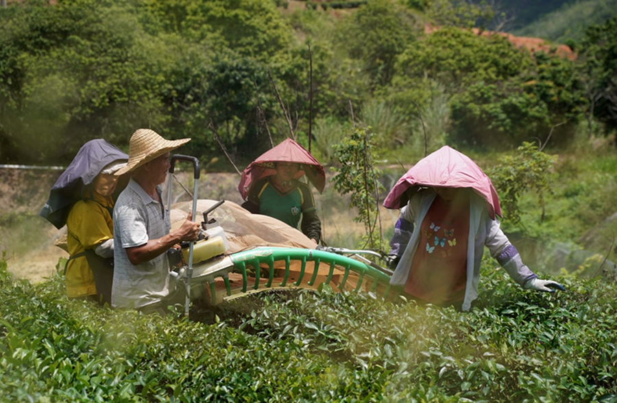 白盆珠鎮(zhèn)擬打造兩個巖茶公園。圖為茶農(nóng)在采茶。