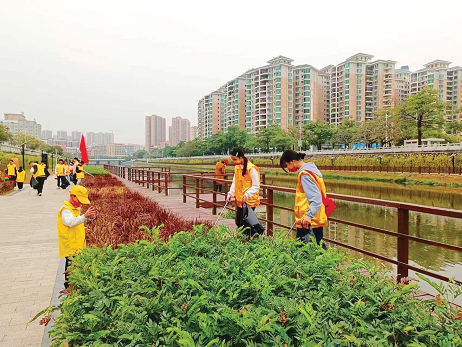 志愿者撿跑帶動身邊人愛護環(huán)境。 惠州日報記者洪鵲兒 通訊員葉衍達 劉曉玲 攝