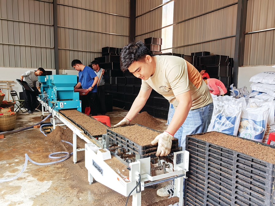 寶口鎮(zhèn)佐坑村,村民正在育秧備耕。