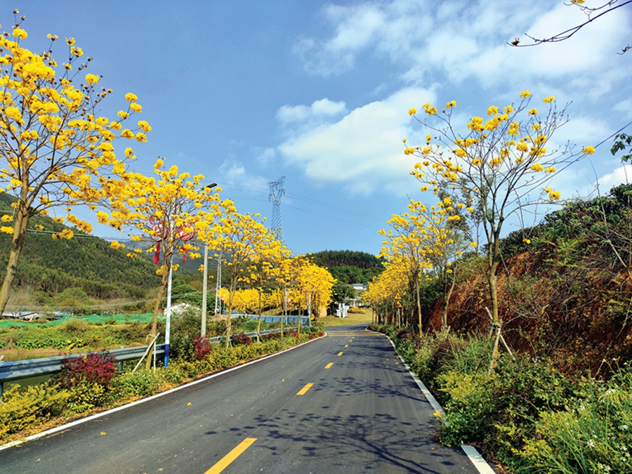 “快來(lái),我們?cè)谶@拍個(gè)視頻。”在村莊廣場(chǎng)處,幾位大姐忙著攝影留念。鏡頭里,盛開(kāi)的黃花風(fēng)鈴木和紫荊花隨風(fēng)飄動(dòng),與大姐們的笑容交相呼應(yīng)!拔覀儊(lái)自平山老城區(qū)!逼渲幸晃淮蠼阏f(shuō),這里距離縣城中心很近,環(huán)境又很好,于是幾個(gè)姐妹便相邀過(guò)來(lái)玩了。