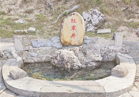 在中洞改編紀(jì)念雕塑的正對(duì)面,有一口水井靜靜佇立,這便是有名的紅軍井。三月正午的天氣略有熱意,井水依然清涼澄澈,周邊居民仍在使用!靶⌒〖t軍井,清清水兩方。涓涓流不斷,漾漾萬年長(zhǎng)。講講紅故事,人人當(dāng)自強(qiáng)。儕儕心向黨,代代好兒郎!边@一首朗朗上口的詩(shī)句描述的就是它。