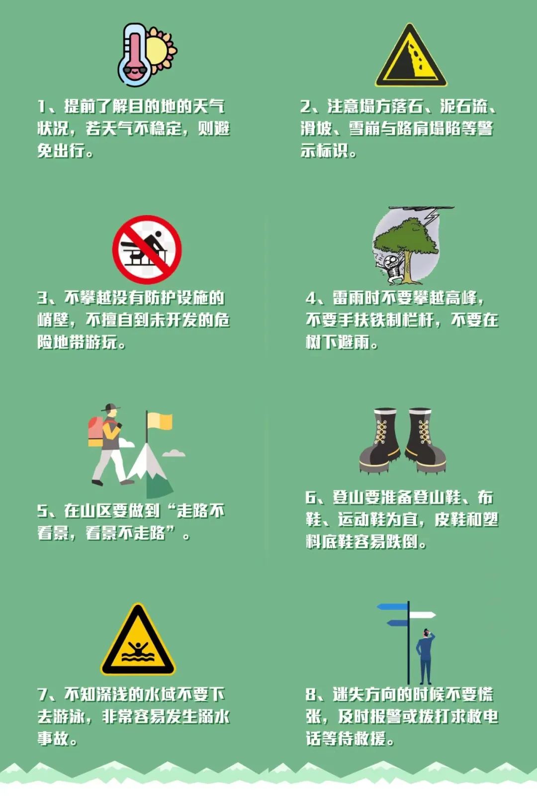 為避免意外發(fā)生,出發(fā)前要制定周密的計劃,對要去地方有個全面的了解,并做好應(yīng)對突發(fā)情況的準(zhǔn)備,掌握一些急救方法,最好與有豐富經(jīng)驗的人通行,切不能盲目從野道登山。