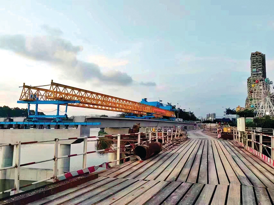 近期天氣晴朗炎熱,惠東縣環(huán)城西路西枝江大橋施工現(xiàn)場內(nèi),施工人員揮汗如雨,一刻不停地緊張施工當(dāng)中。據(jù)現(xiàn)場工作人員介紹,西枝江大橋已經(jīng)完成總工程量的65%。而整個(gè)環(huán)城西路項(xiàng)目方面,目前惠東縣產(chǎn)業(yè)轉(zhuǎn)移工業(yè)園園區(qū)段1.3公里由惠東縣產(chǎn)業(yè)轉(zhuǎn)移工業(yè)園管委會完成建設(shè),正在建設(shè)的是產(chǎn)業(yè)大道到S356線路段,全長約6.33公里。該項(xiàng)目已完成路基清表42%,路基土石方填筑15%,污水管網(wǎng)頂管50%,高壓擺噴樁59%、涵洞工程50%及青河橋樁基礎(chǔ)完成88%。其中控制性工程西枝江大橋主體預(yù)計(jì)8月底完工,全線路基預(yù)計(jì)10月底完工,預(yù)計(jì)今年底完成道路主體工程建設(shè)。