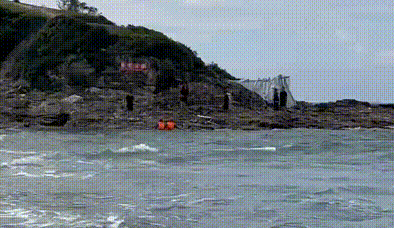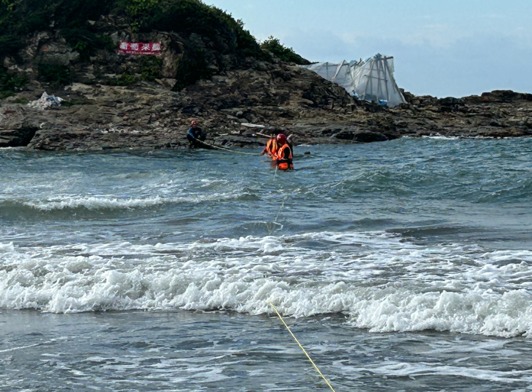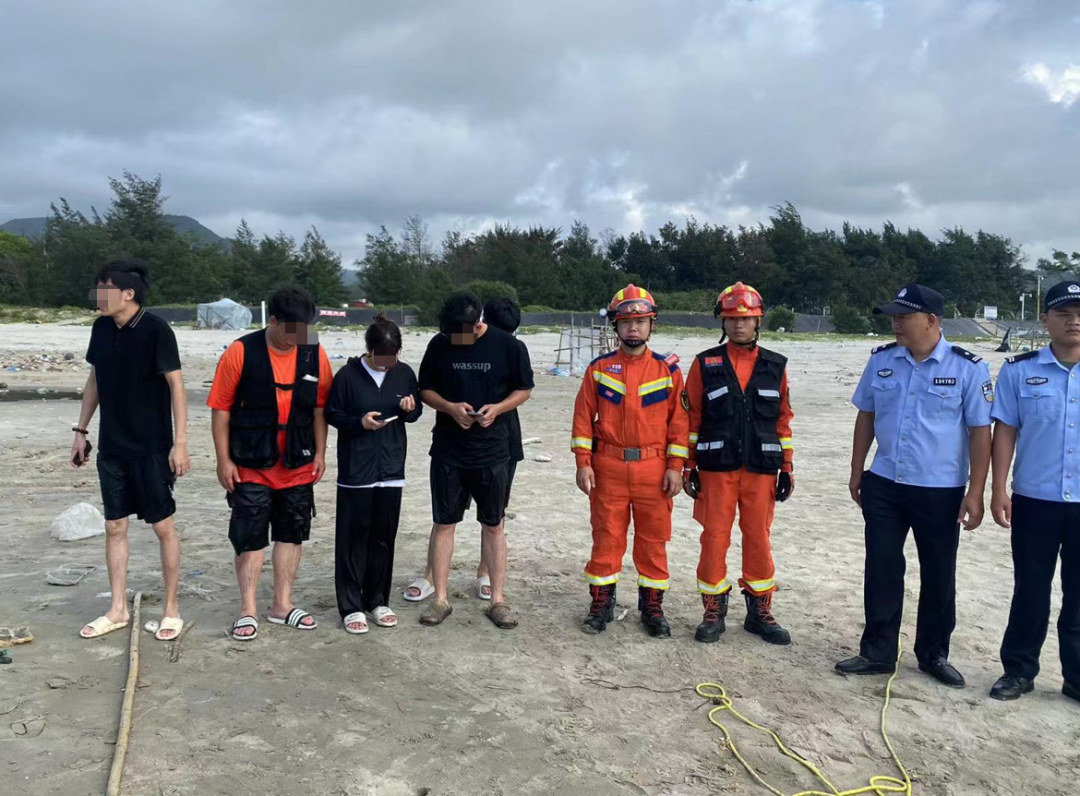 消防員到達(dá)現(xiàn)場后,經(jīng)與現(xiàn)場派出所警員了解到:5人相約登島拍攝日出,結(jié)果遇上漲潮,導(dǎo)致無法離開。了解到情況后,消防員立即系上安全繩,帶上救生衣和救生圈前往島上救援。