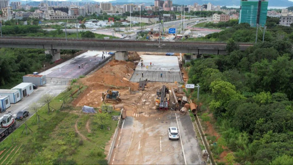 惠州大道東段延長(zhǎng)線涉鐵工程項(xiàng)目負(fù)責(zé)人程鵬:“項(xiàng)目分兩部分,一部分是自來(lái)水頂管工程,還有一個(gè)就是U型槽的道路(施工),自來(lái)水頂管工程已經(jīng)全部完工了,并且內(nèi)部的水管串完了;U型槽道路完成的進(jìn)度也有了80%。”