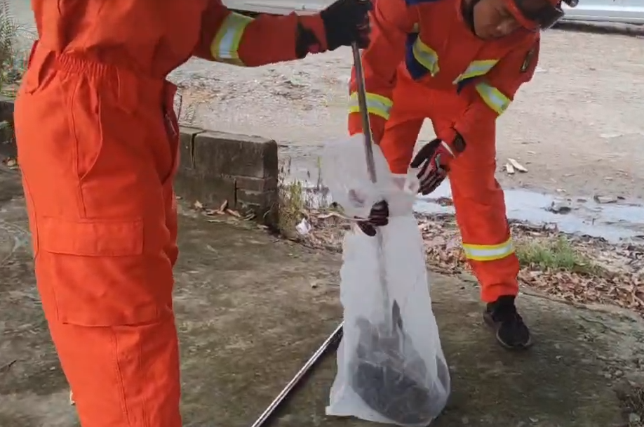 隨后指揮員讓隊(duì)員準(zhǔn)備好抓蛇工具