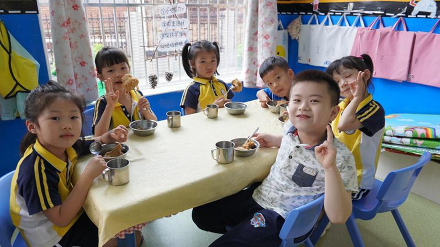 惠東縣直屬機關(guān)幼兒園學(xué)生正在吃下午茶。