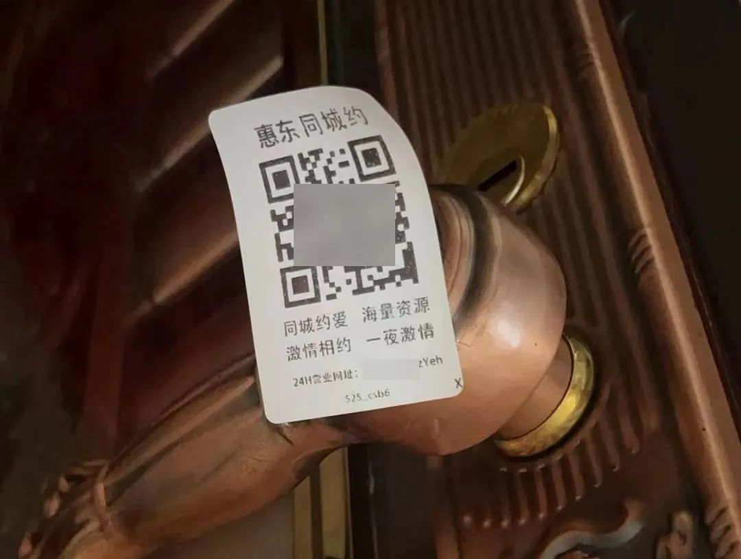 經(jīng)查,王某澤(男,21歲,惠東人)、朱某威(男,26歲,惠東人)兩人為謀取利益,趁著夜間人流稀少,在小區(qū)、路邊共張貼“涉黃二維碼”貼紙1000余張。目前,上述2人已被惠東警方依法拘留,案件正在進一步辦理中。