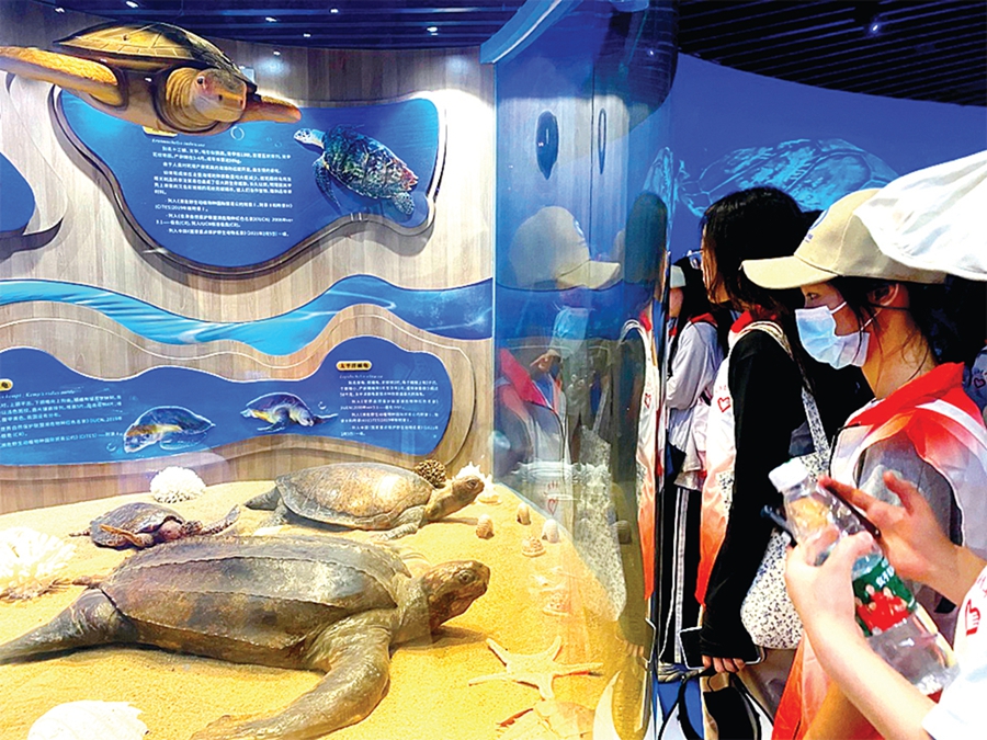 學(xué)員們走進(jìn)海龜科普館,學(xué)習(xí)如何保護(hù)生態(tài)環(huán)境。惠州日?qǐng)?bào)記者藍(lán)斐菲 通訊員郭福娜 攝