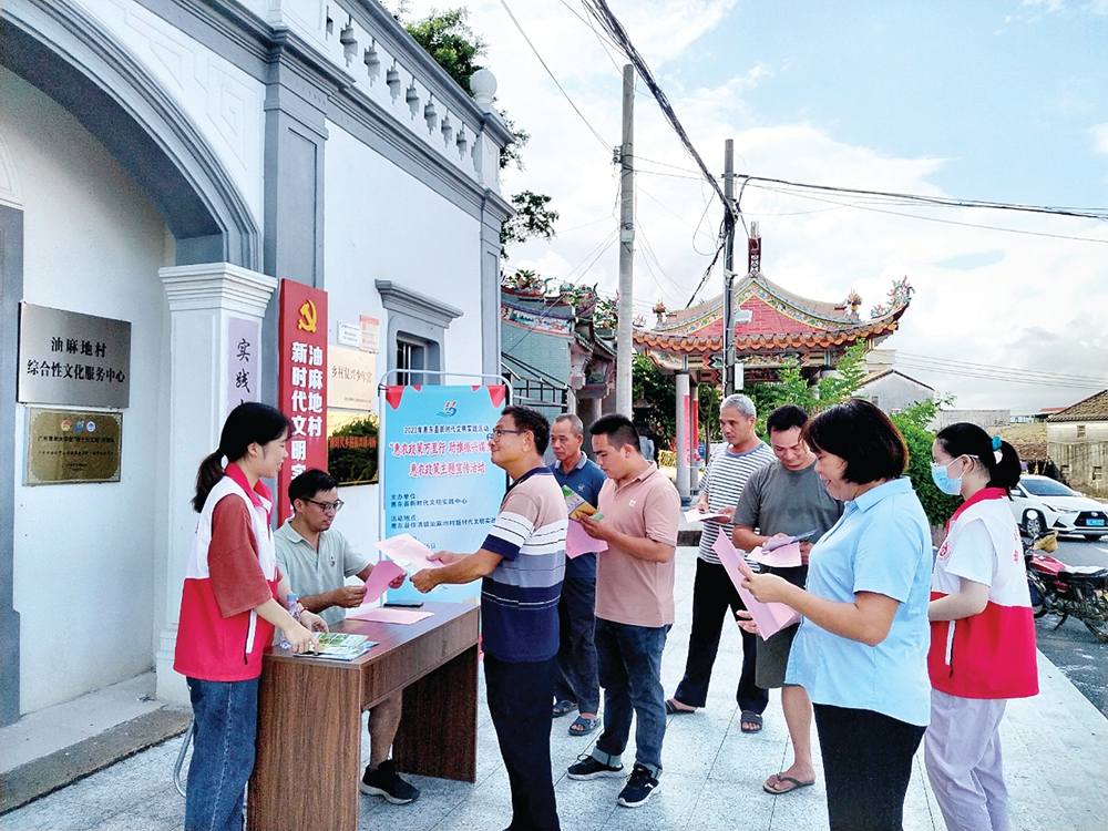 惠州日報訊 (記者蔡偉健 特約通訊員葉衍達(dá))為進(jìn)一步貫徹落實(shí)好國家各項惠農(nóng)政策,提高廣大群眾對惠農(nóng)政策的知曉度,促使各項惠農(nóng)政策深入人心,讓群眾更好地維護(hù)自身的合法權(quán)益,日前,由惠東縣新時代文明實(shí)踐中心主辦的“惠農(nóng)政策萬里行 助推振興謀發(fā)展”惠農(nóng)政策主題宣傳活動在惠東縣鐵涌鎮(zhèn)油麻地村新時代文明實(shí)踐站開展。