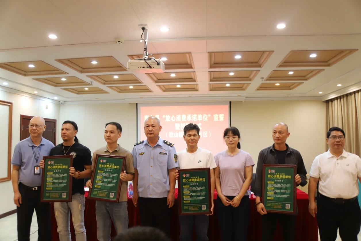 惠東縣市場(chǎng)監(jiān)管局向各承諾商戶授予牌匾。
