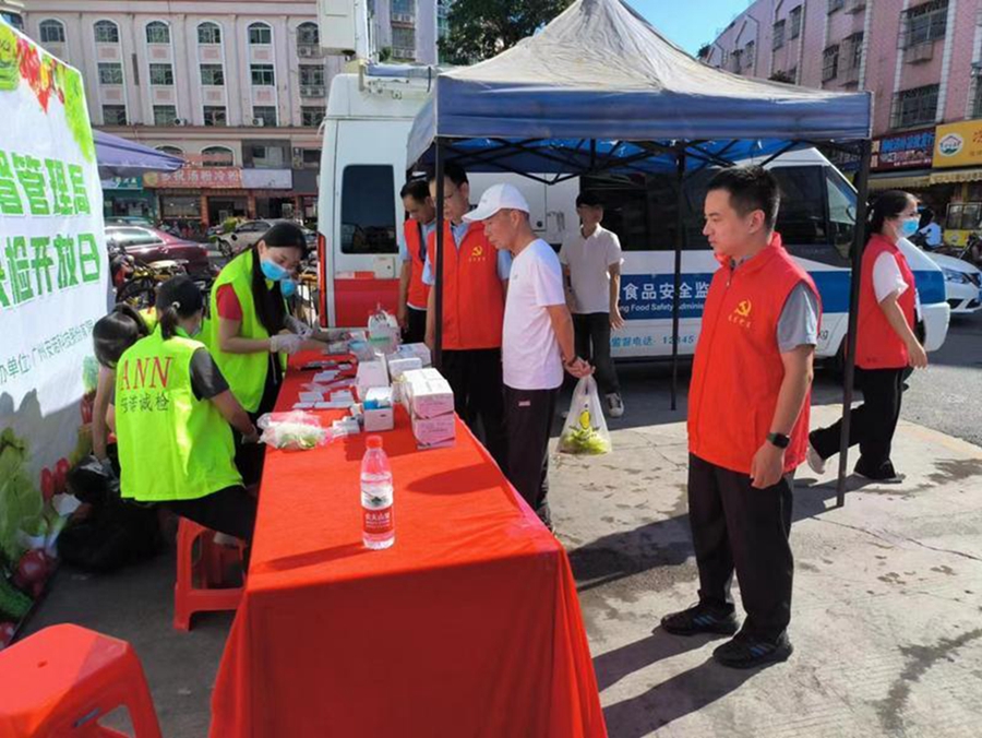 “阿姨,我們這里可以對米、蔬菜等農(nóng)產(chǎn)品進(jìn)行檢測,讓你們吃得放心、安心!被顒蝇F(xiàn)場,專業(yè)檢測人員對過往群眾送檢的農(nóng)產(chǎn)品進(jìn)行取樣、登記、分裝,對果蔬中的農(nóng)藥殘留、肉類的獸藥殘留等進(jìn)行快速檢測,并現(xiàn)場告知檢測結(jié)果?鞕z中心、市場監(jiān)管所、承檢機(jī)構(gòu)的黨員向市民介紹農(nóng)殘獸殘的危害,提醒廣大市民在選購濕米粉等食品時認(rèn)真查看生產(chǎn)日期、保質(zhì)期和儲存條件,嚴(yán)防食品安全風(fēng)險(xiǎn),同時現(xiàn)場普及涼菜生腌潛在的食品安全隱患等食品安全知識。此次活動有效增強(qiáng)市民對食品安全的認(rèn)識和了解,減少食品安全事故的發(fā)生。