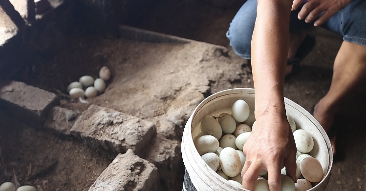 由于生長(zhǎng)在海邊,而且吃海鮮長(zhǎng)大,所以這里的鴨子被形象地叫作海鴨,產(chǎn)下的蛋則稱為海鴨蛋。海鴨蛋養(yǎng)殖戶林漢江告訴記者,他家兩代人都靠賣海鴨蛋為生。每天早上他就開始撿鴨蛋,每天能撿1000多個(gè)。林漢江表示,吃玉米和海鮮長(zhǎng)大的海鴨生出的海鴨蛋金黃透亮,幾乎沒有腥味。他每天預(yù)留出部分新鮮鴨蛋后剩下的都用海鹽和黃泥腌制起來。腌制過后的鴨蛋香味撲鼻,滿口盈香。