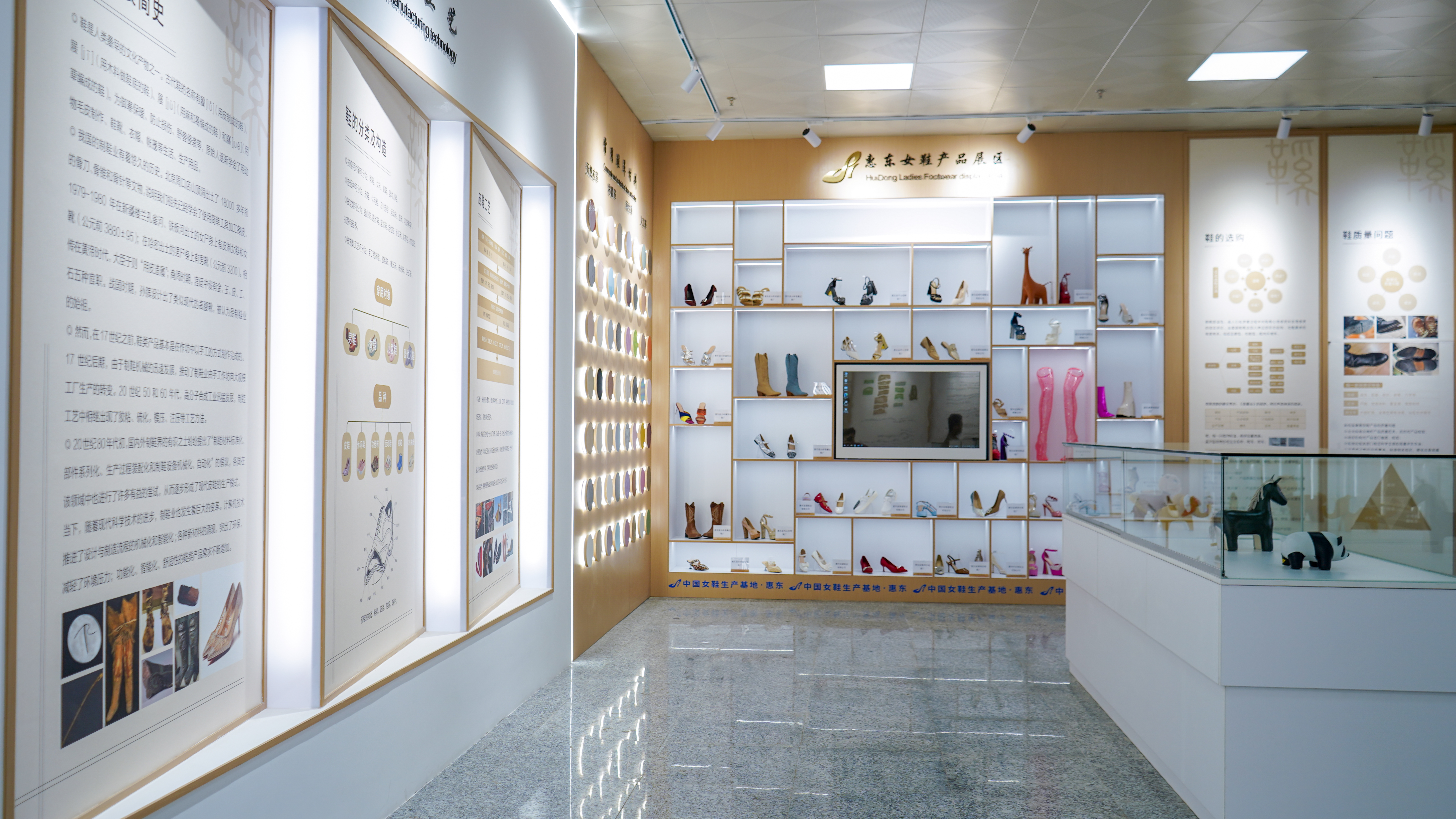國(guó)家鞋檢中心展廳惠東女鞋產(chǎn)品展區(qū)。惠州日?qǐng)?bào)記者陳濤 攝