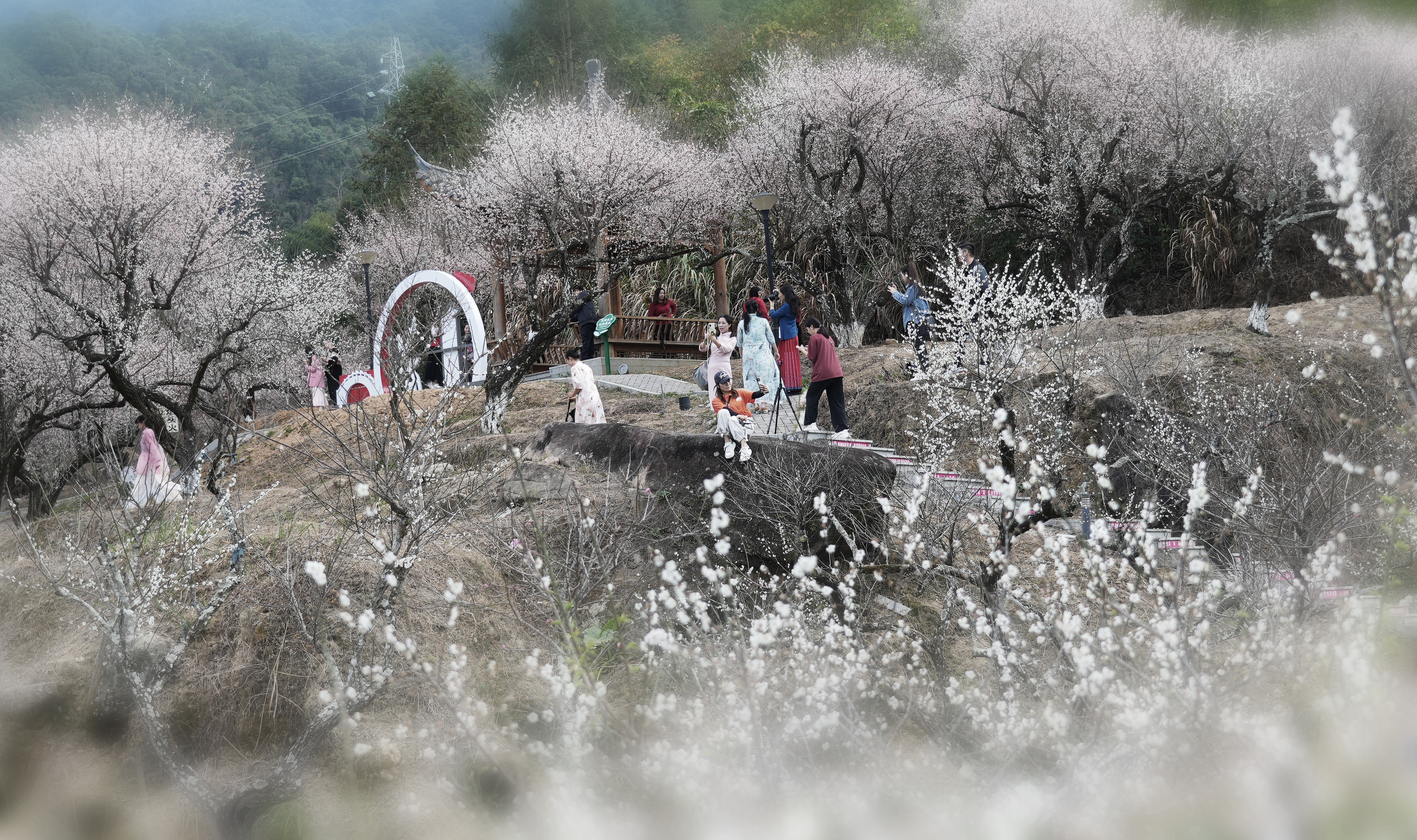 暗香浮動,蜂蝶飛舞。眼下,已進入農(nóng)歷臘月,位于惠東縣的廣東梁化國家森林公園梅園的梅花競相怒放。