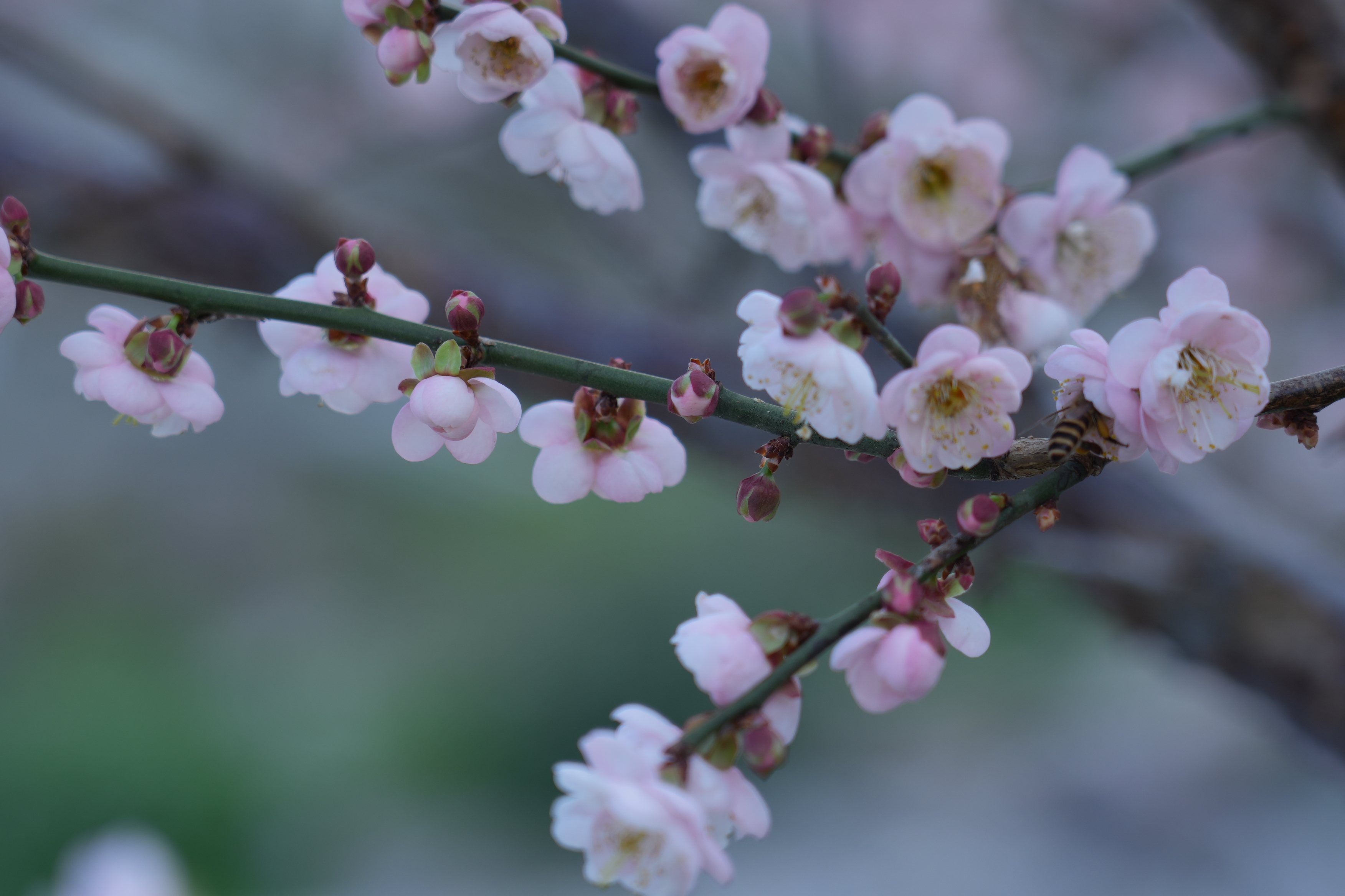 記者沿著山丘看到,梅花層層疊疊,屈曲盤旋的枝干自由舒展,白的、粉的花蕾綴滿枝頭,一團團一簇簇,蜜蜂嚶嚶嗡嗡,翩飛于花瓣之上。不少游客慕名而來,賞梅聞香,拍照打卡。