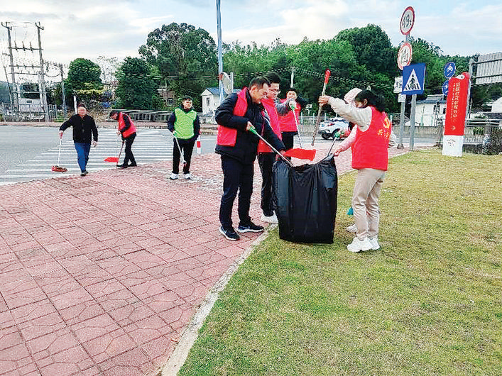 大家在新聯(lián)村開(kāi)展清潔行動(dòng);葜萑?qǐng)?bào)記者洪鵲兒 特約通訊員謝長(zhǎng)波 通訊員羅燕娜 攝