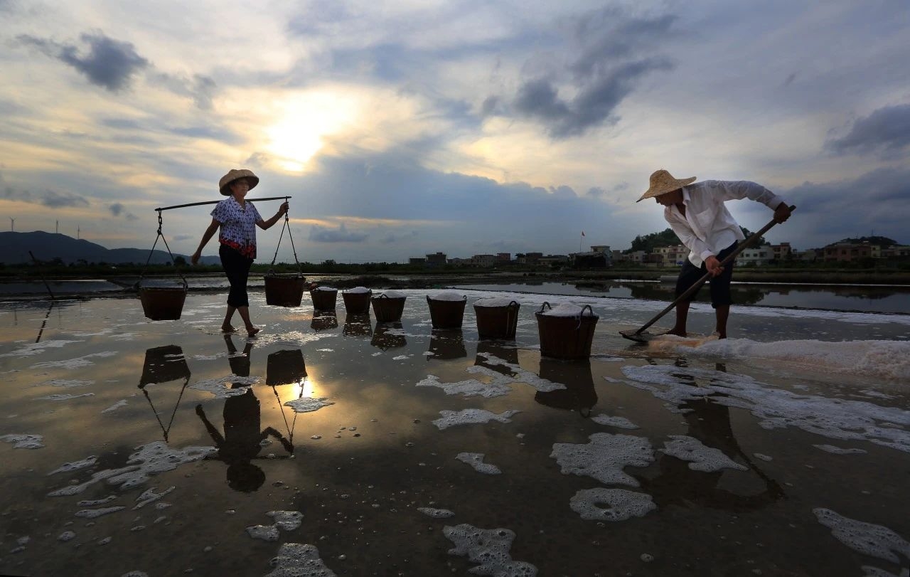 海鹽制作技藝歷史可上溯到宋朝,主要分布在惠東縣的稔山、平海、港口、黃埠等沿海地區(qū)。海鹽制作技藝分納潮、耙沙、收沙、踩漏、戽漏、驗(yàn)鹵、水鹵水、挑漏、碾池、上鹵水、撒鹽種、松鹽、淋鹵、耙收、擔(dān)垟?shù)?5道工序。惠東海鹽顆粒易溶且口感咸鮮回甘,符合傳統(tǒng)消費(fèi)者的偏好,是名副其實(shí)的綠色健康食鹽。